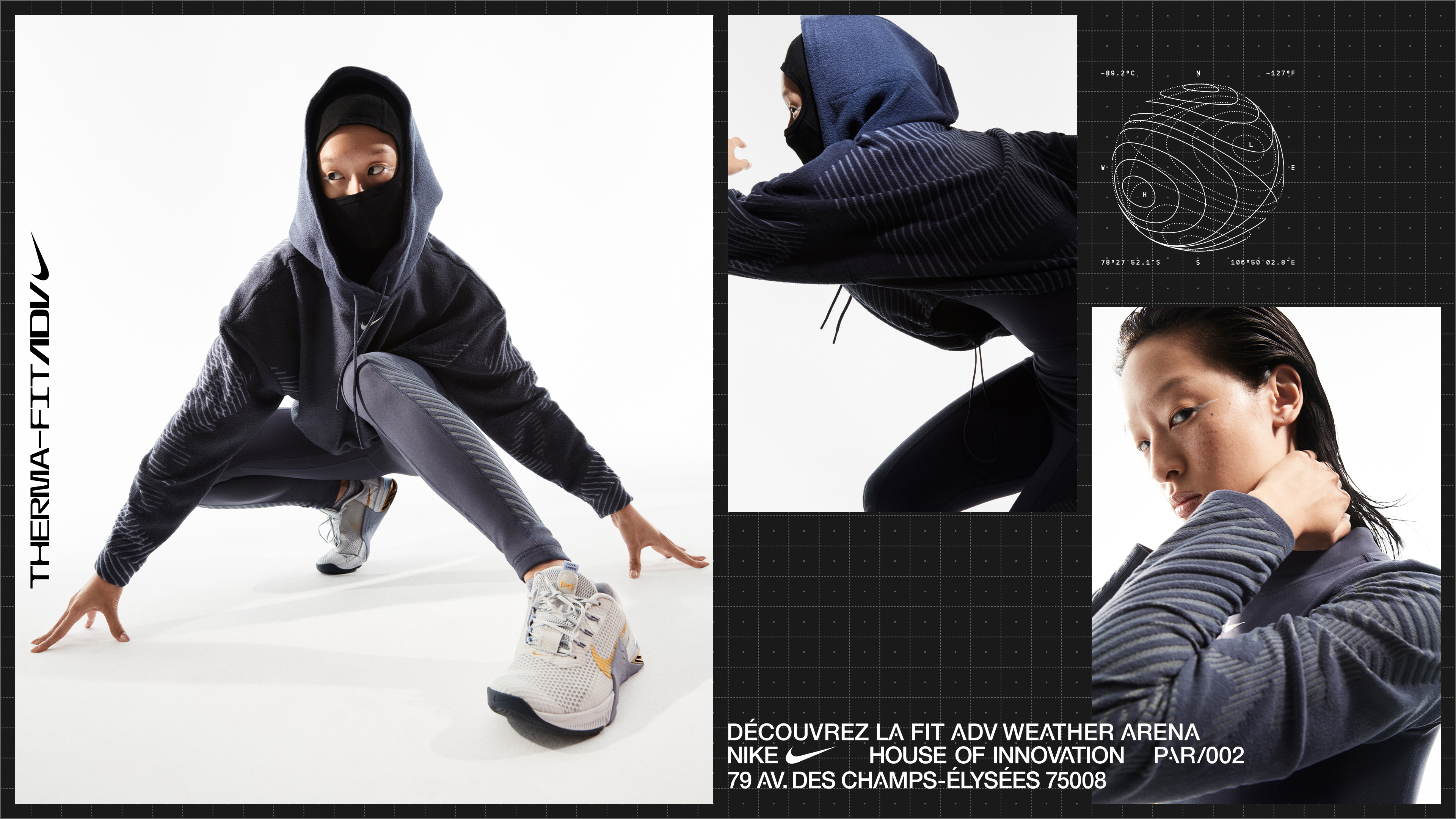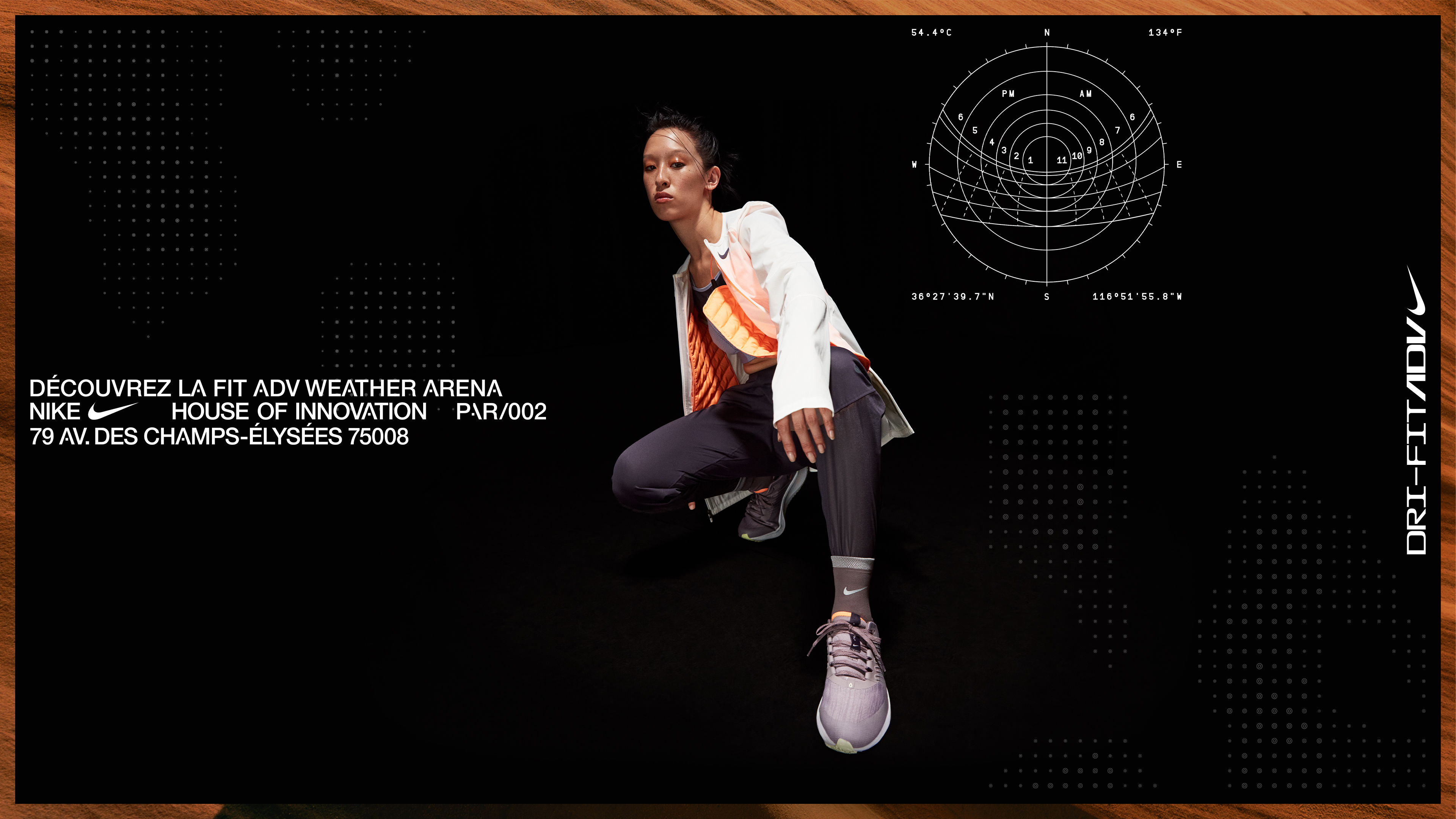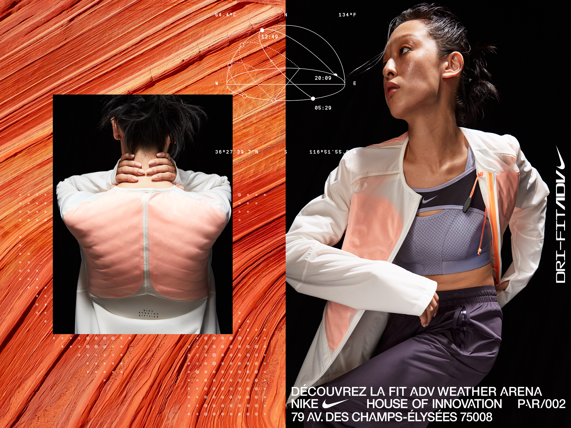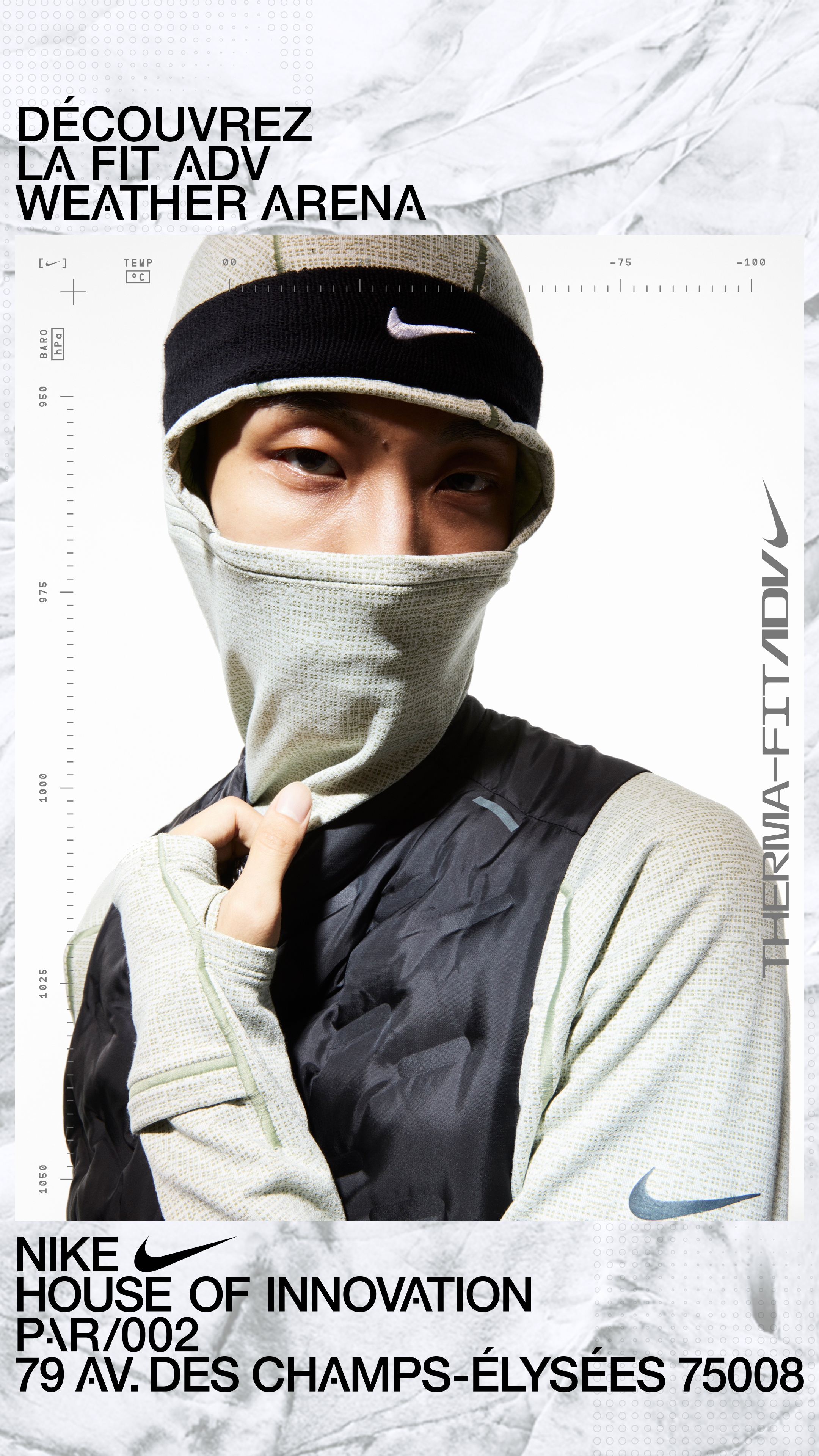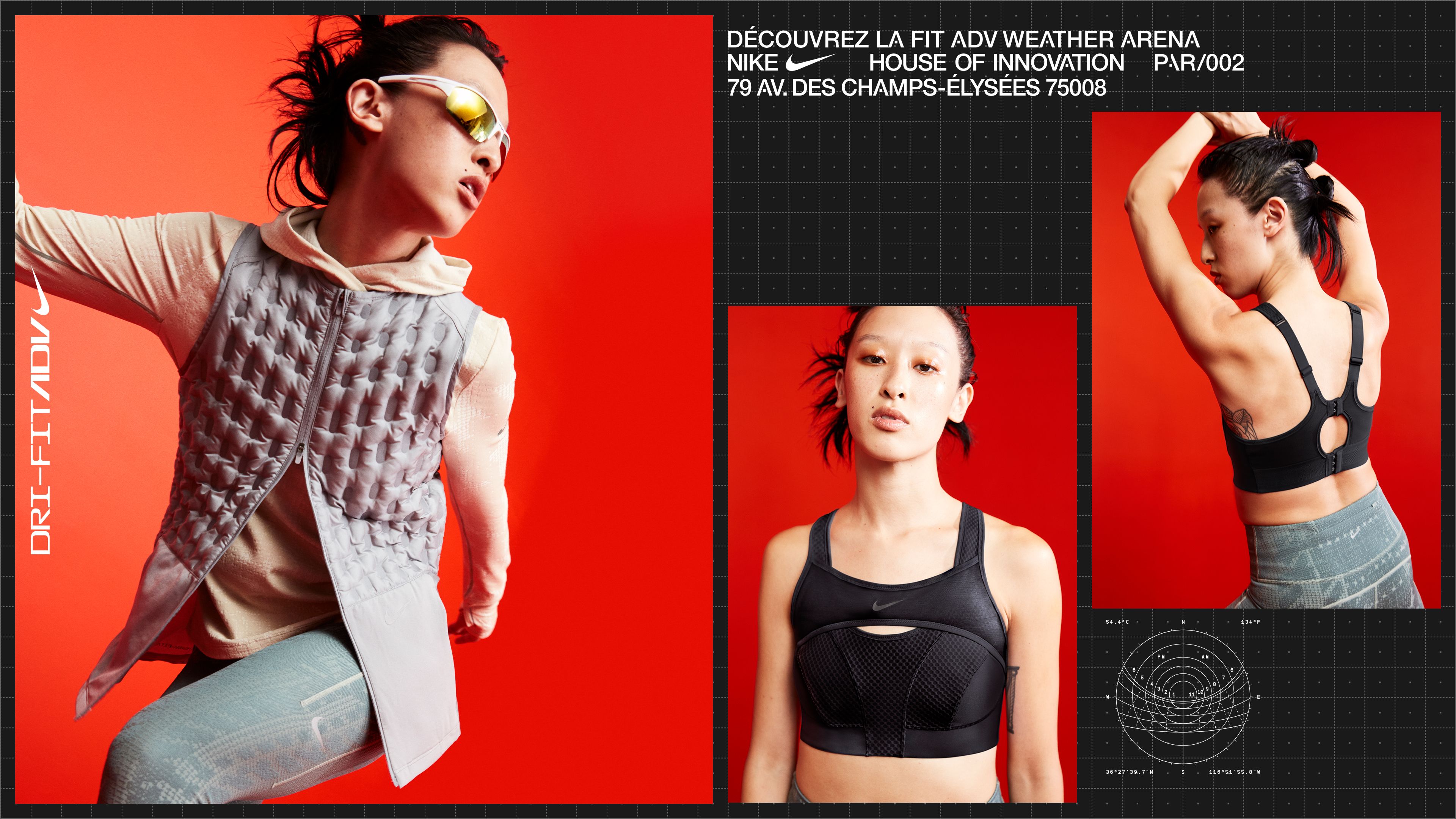 Series of print and digital promotions for Nike House of Innovation Paris’ in-store FIT ADV Weather Chamber.