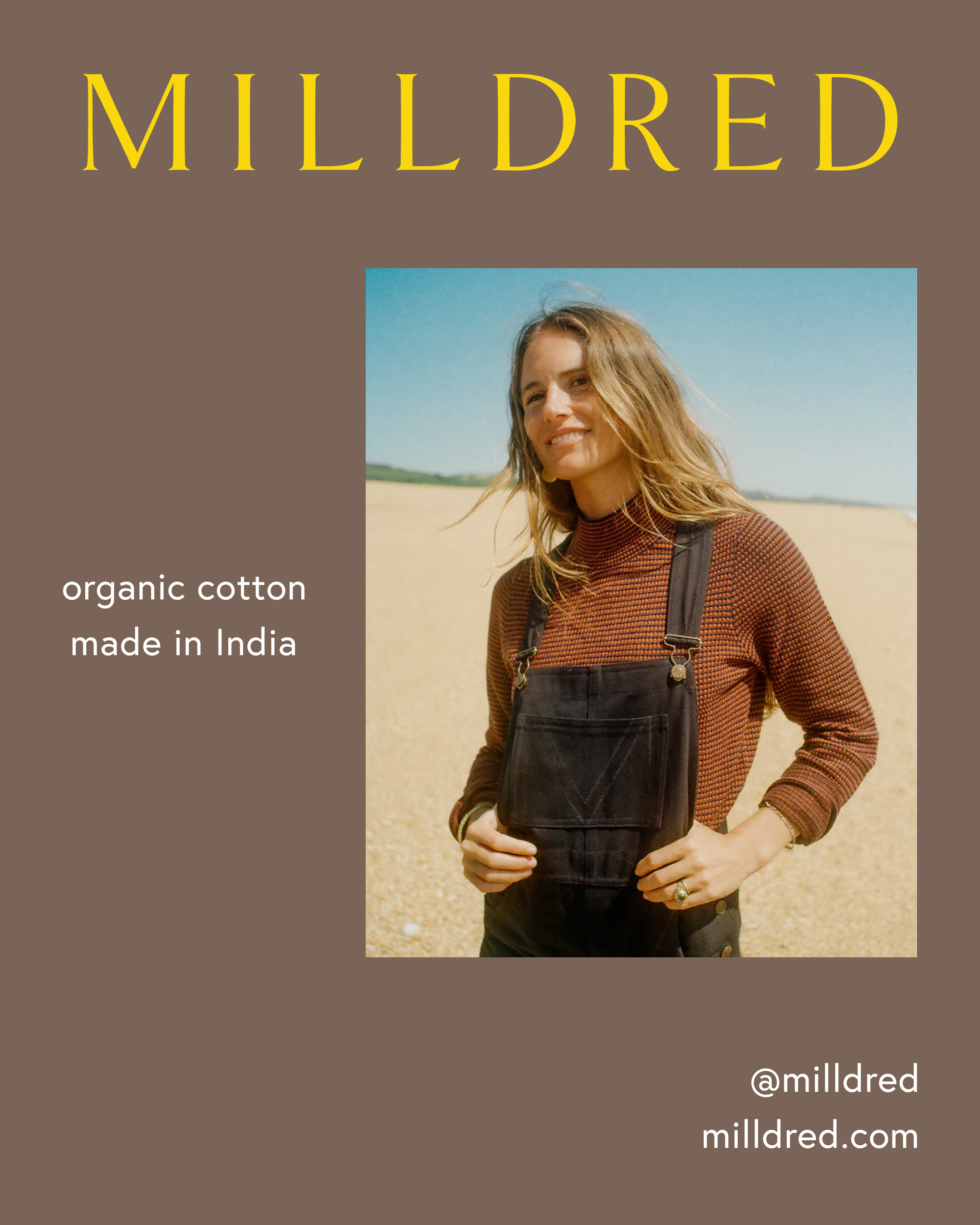 who create responsibly made, organic cotton dungarees. Milldred was founded by Milly Marsden in 2020.