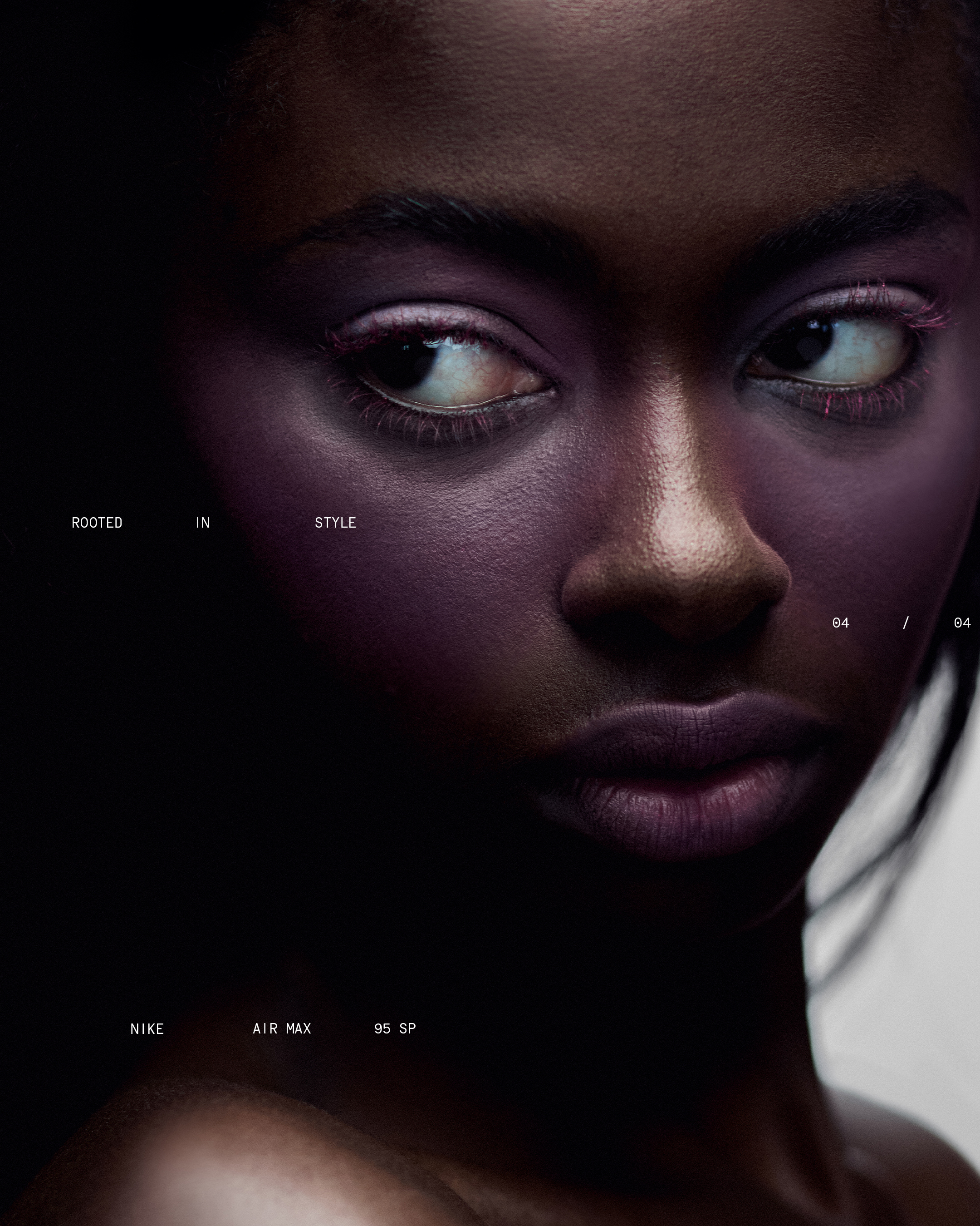 A concept from photographer Arron Watson-McNab brought to life by the Sense Of Sync team Bringing footwear into new spaces by creating hair and make up looks inspired by elements from trainers.